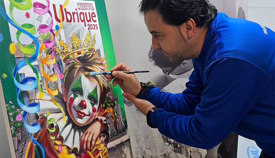 Chema Riquelme artista multidisciplinar de Huelva tiene una amplia trayectoria en la pintura, la escultura y la publicidad, habiendo sido premiado en el ámbito de la cartelería en más de un centenar de certámenes de diversas temáticas en todo el territorio nacional, así este año anunciará los carnavales en Navalmoral de la Mata (Cáceres) o la cercana Bornos, además del ubriqueño.